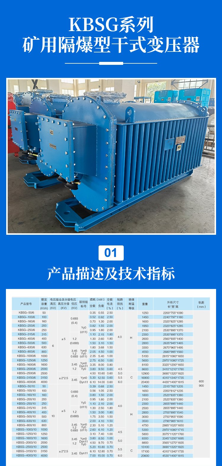 KBSG-3150/10 隔爆型干式變壓器 礦用防爆型移動(dòng)變電站